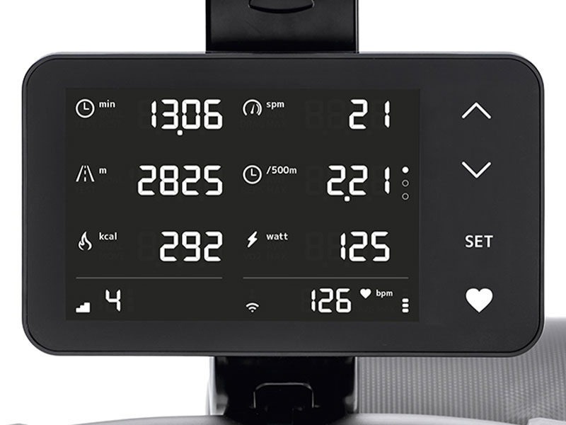 Making waves in the rowing machine market, Aquafeel™ technology replicates real life rowing. We used air resistance for the rowing mode and focused on promoting a natural curvature throughout each stroke. The handle is your oar, and each stroke should feel like it.