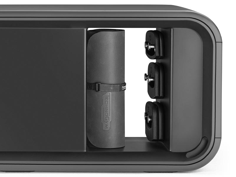 You can also mount the elastic resistance bands onto the discreet fixing points of this bench with weights set and turn it into a training gym for developing stronger and more defined arm, shoulder, and chest muscles. Dip into the Technogym training program put together by our talented virtual trainers and discover even more ways of using your bench and weights set effectively. Then when your workout is finished, put everything neatly away in the well-designed storage compartments of your Multifunction Weight Bench.