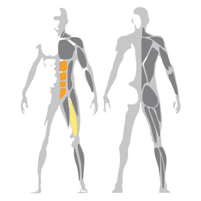 Muscles trained: Rectus Abdominis, Obliques, Rectus Femoris, Iliopsoas